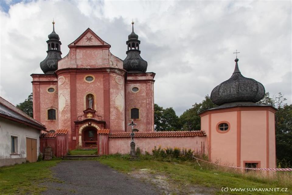 Přirozeným centrem kraje pod horou Žďánovem v Pošumaví je Strašín s poutním a zároveň farním kostelem Narození Panny Marie. Trojlodní kostel s červeně natřenou fasádou a třemi cibulovými báněmi je položen na návrší mimo ves a tak je vidět už zdaleka ze všech stran. Vznik původní kostelní stavby, ze které se dochovala pouze hranolová třípatrová románská věž v ose západního průčelí, je kladen do první poloviny 13.století.