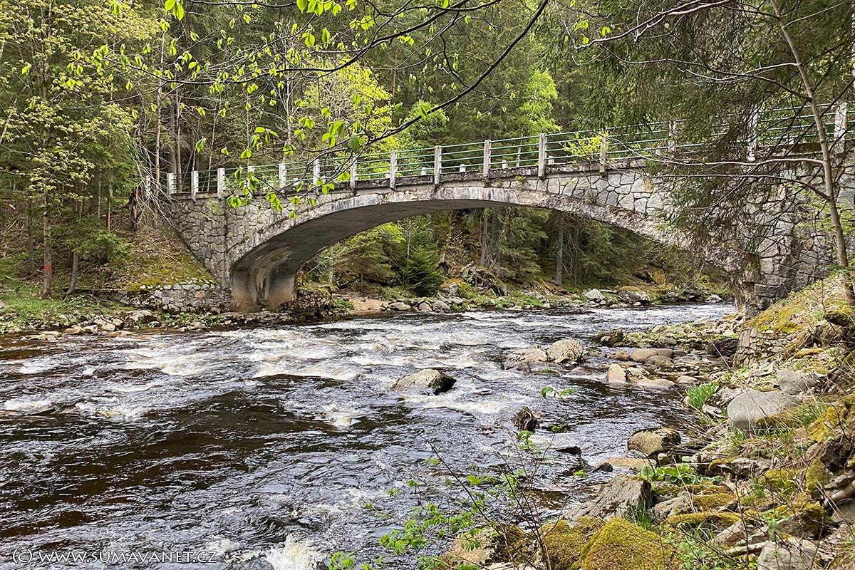 Samonosný železobetonový oblouk je vklenutý na obou březích Otavy do skály, má rozpětí cca. 25 metrů a sílu pře půl metrů. Žulovými kostkami dlážděná vozovka má šířku 4,3 metru.