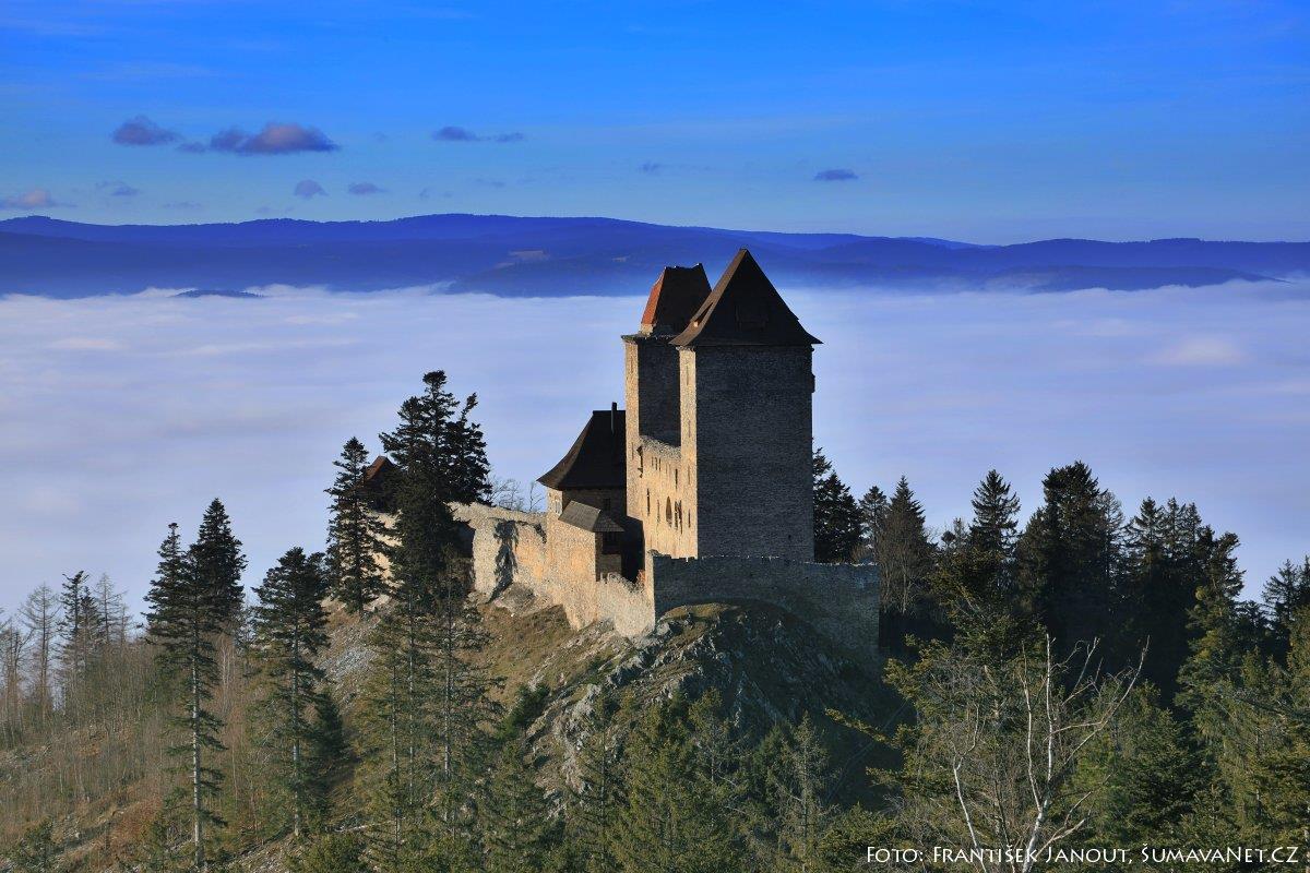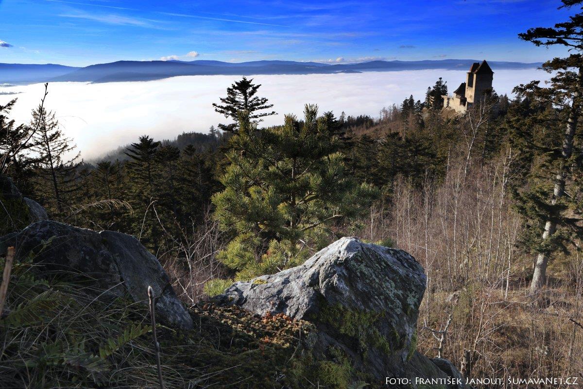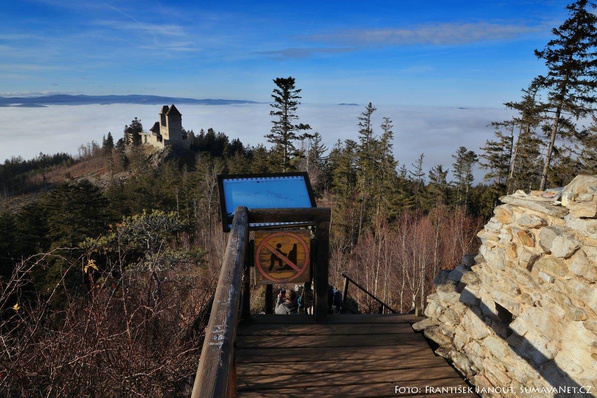 V době inverze, kdy jsou níže položené oblasti zahaleny mlhou a vy se chcete vydat za sluníčkem, nemusíte na Šumavě cestovat příliš vysoko. Takovým místem je také, zejména v sezóně hojně navštěvovaný, hrad Kašperk.
