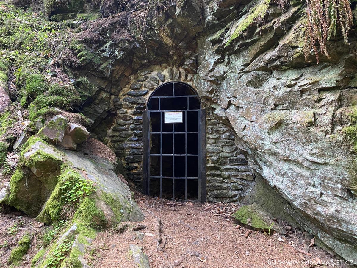 Přibližně 50 m od ČOV, vpravo od cesty, vstup do štoly na úpatí vrchu Friedlholz.