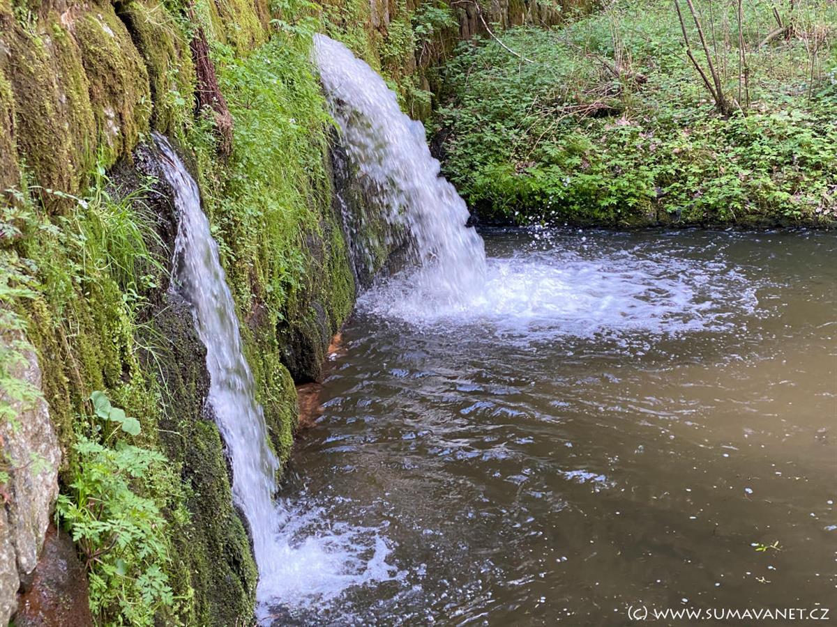 Cestou proti proudu Zlatého potoka se dostáváme k místu, kde v minulém století stávala továrna na dřevěný drát a zápalky J. Simlicka.