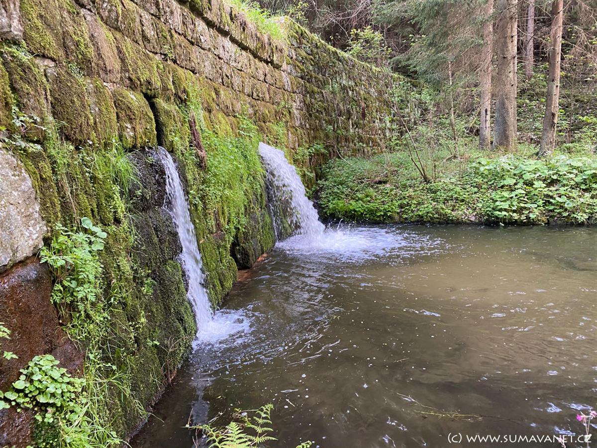 V následném stoupání míjíme bývalé koupaliště. Nad ním odbočíme vpravo a přicházíme k archeologické rezervaci – středověké úpravně zlaté rudy (výzkum Národní techn. muzeum a Muzeum Šumavy) – základy objektu 11 x 12 m, zbytky pícky k žíhání křemenů obsahujících zlato, atd. Zde se nachází poslední informační panel naučné stezky.